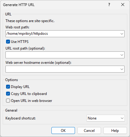 Use the Web server hostname override to specify your web server hostname, if it differs from the file server domain. E.g. if you connect to the ftp.example.com to manage your files, you want to specify www.example.com here. You can also use this option to generate an URL with a non-standard port number. You can keep the option empty, if your file server domain matches the web server domain.