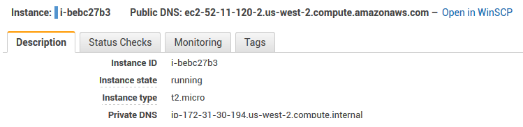 // ==UserScript== // @name WinSCP and PuTTY links for Amazon EC2 // @namespace https://winscp.net/ // @author WinSCP // @homepage https://winscp.net/eng/docs/guide_injecting_sftp_ftp_url_to_page // @description Adds an "Open in WinSCP" link next to "Public DNS" field on Instances page of Amazon EC2 management console // @include https://*console.aws.amazon.com/* // @icon https://winscp.net/pad/winscp.png // @version 2.0 // @grant none // @require https://code.jquery.com/jquery-3.2.1.min.js // ==/UserScript== setInterval( function () { waitForHostNameElements (); }, 500 ); function waitForHostNameElements() { var targetNodes = $('span:contains("Public DNS:")'); if (targetNodes && targetNodes.length > 0) { targetNodes.each ( function () { // link not added yet if ($(this).html().indexOf('sftp://') < 1) { // Retrieve hostname var hostname = $(this).text().replace("Public DNS:", "").trim(); // Ignore terminated instances if (hostname != "-") { // Change the username if needed var username = "ec2-user"; var uri = '://' + username + '@' + hostname + '/'; $(this).append( ' – <a href="sftp' + uri + '">Open in WinSCP</a>' + ' – <a href="ssh' + uri + '">Open in PuTTY</a>'); } } } ); } }