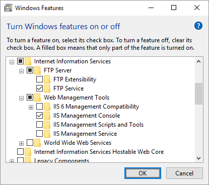 - Expand Internet Information Services > FTP Server and check FTP Service.