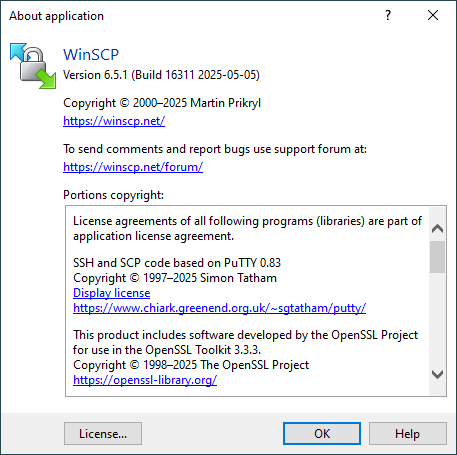To open the window with GPL license text, click License.