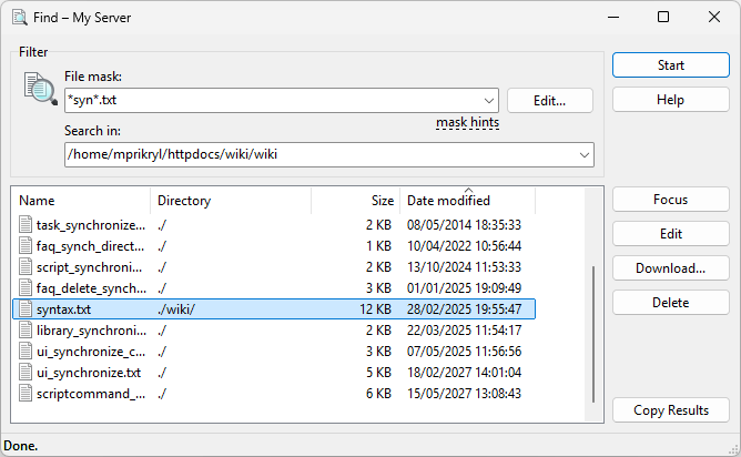 In Search in, specify root directory to start searching from. Initially the current working remote directory is selected.