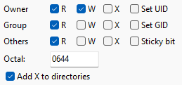 Note that if permissions box pops up from an edit box, you can enter permissions in octal format directly into the edit box, without having to pop it up.
