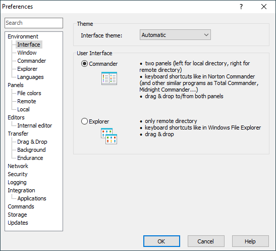 Before your selection, you may first learn more about the WinSCP user interfaces.