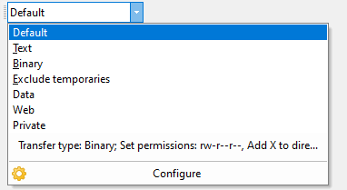 On Transfer Settings toolbar you can override default transfer settings by selecting one of the configured presets. Note that the first option Default represents default transfer settings.