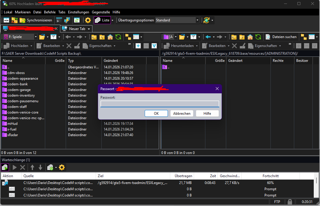 So I'm always getting the password prompt when I try using WinSCP and upload files to my game server, and I don't know why it won't go away and keeps prompting password even though I typed my FTP password a thousand times. Are there any fixes for this?