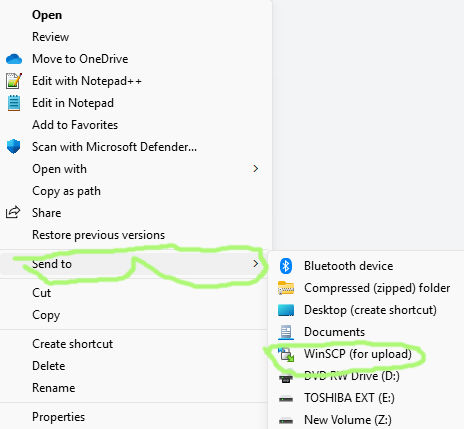 Using the right click context menu, more options and then a Send To option. Choose the site to send the file and get an invalid access to memory error. Do this each week and first tiem I have encountered it.