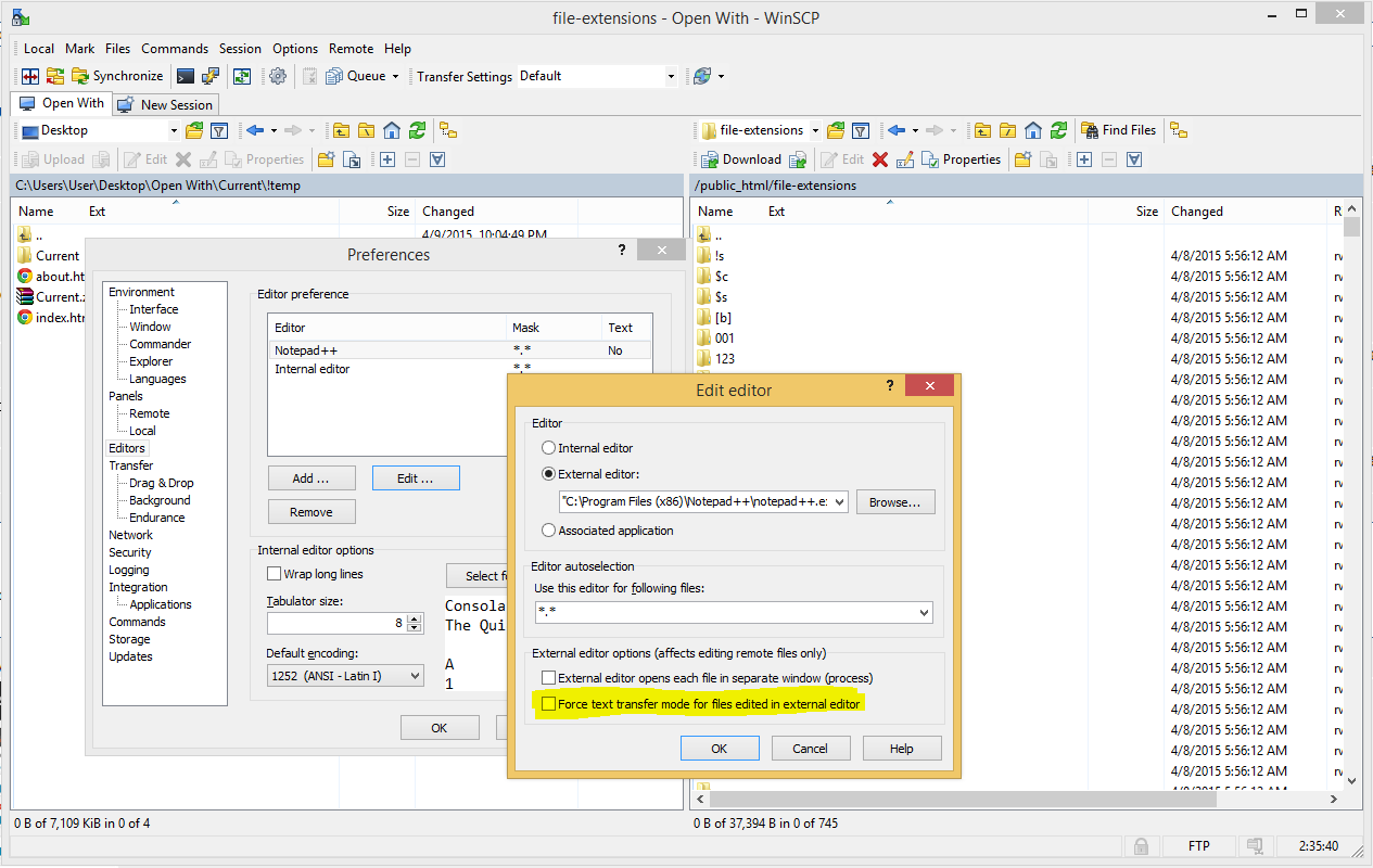Using both 4.1.5 and 4.1.6 I end up with a different size Text file at the destination and have found that every CR+LF has been changed to CR+CR+LF.