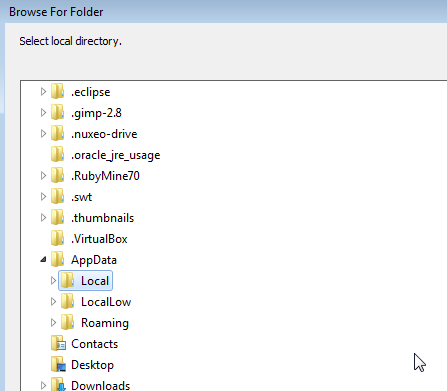 So is the problem that you cannot see it? (did you enable showing of hidden files?)i'm seeing the same issue. cannot browse (local->go to->open directory) any directory within %USERPROFILE%\AppData.
