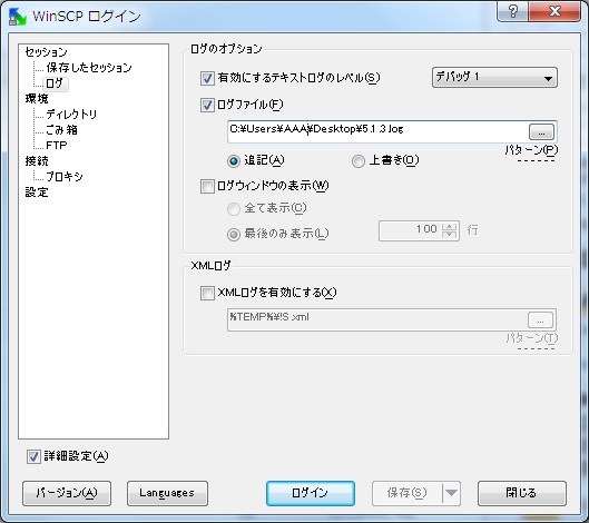 Is a setup of the log file which WinSCP outputs mistaken?