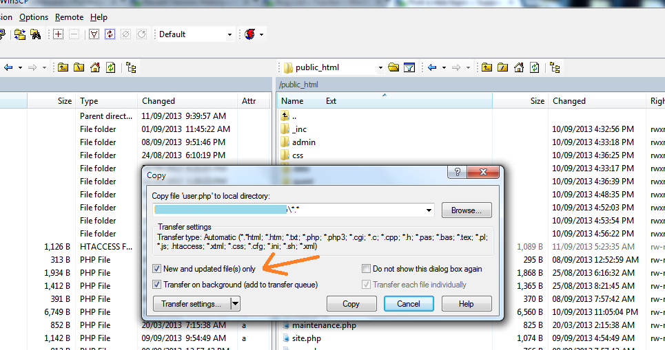 3) Download all files using WinSCP with 'New and updated file(s) only' option checked. (snapshot attached)