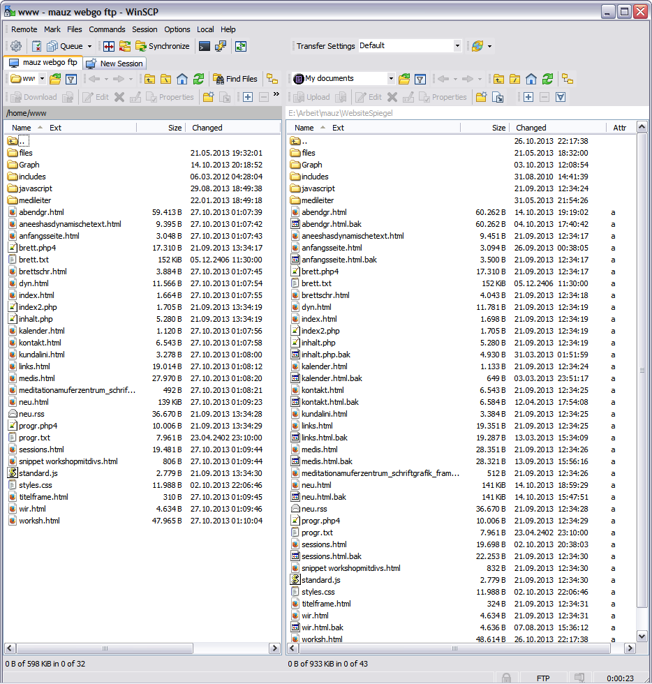 I attached a screenshot of the WinSCP screen and a command-line-FTP-dir-screen.