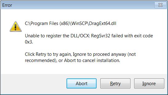 regsvr32 "C:\Program Files (x86)\WinSCP\DragExt64.dll"