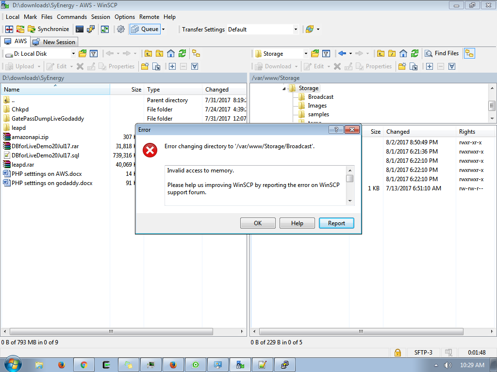 Invalid access to memory - TTerminal::LogEvent