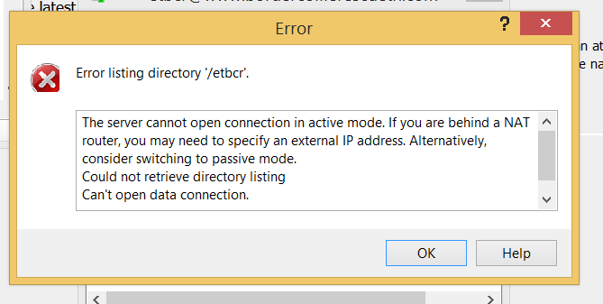 Error message: Lost Connection Timeout detected. Could not retrieve directory listing. Error listing directory "/etbcr".