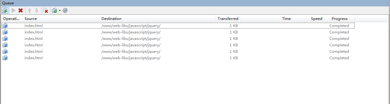 Do you mean that the queue panel of WinSCP doesn't display time or speed(even though it includes them) when the transfer finished (or started) at present? Just like the follow image.