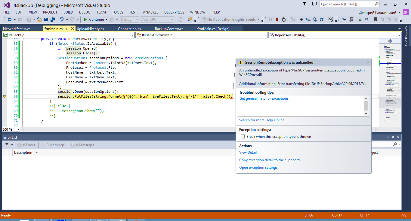 Physical network disconnect - Unusable WinSCP session