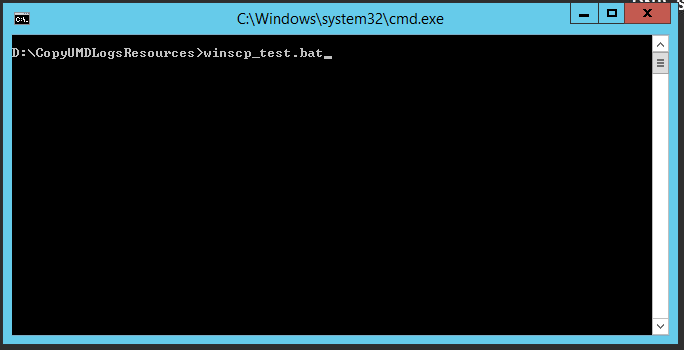 WinSCP.com <username>:<password>@<hostname> /command "synchronize local E:\UMD_Logs\04_ExternesTestsystem\srunavte2 /data1/umdav/log" exit
