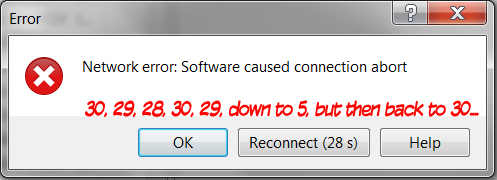 And with the new 5.8 version (I'm using the Windows portable version), the countdown kept on resetting itself back to 60 seconds during the ten or so seconds it took for my server to finally accept my session back.