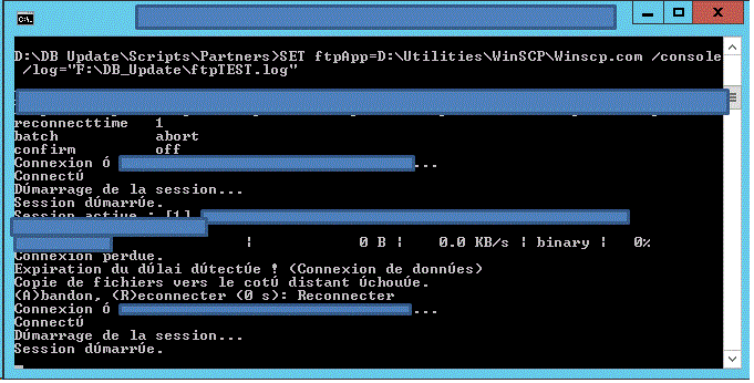 option reconnecttime 1 option batch abort option confirm off OPEN ftp://xxxx:yyyy@ftp.wwww.com -passive LCD "D:\" PUT "xxxxx.zip" CLOSE exit