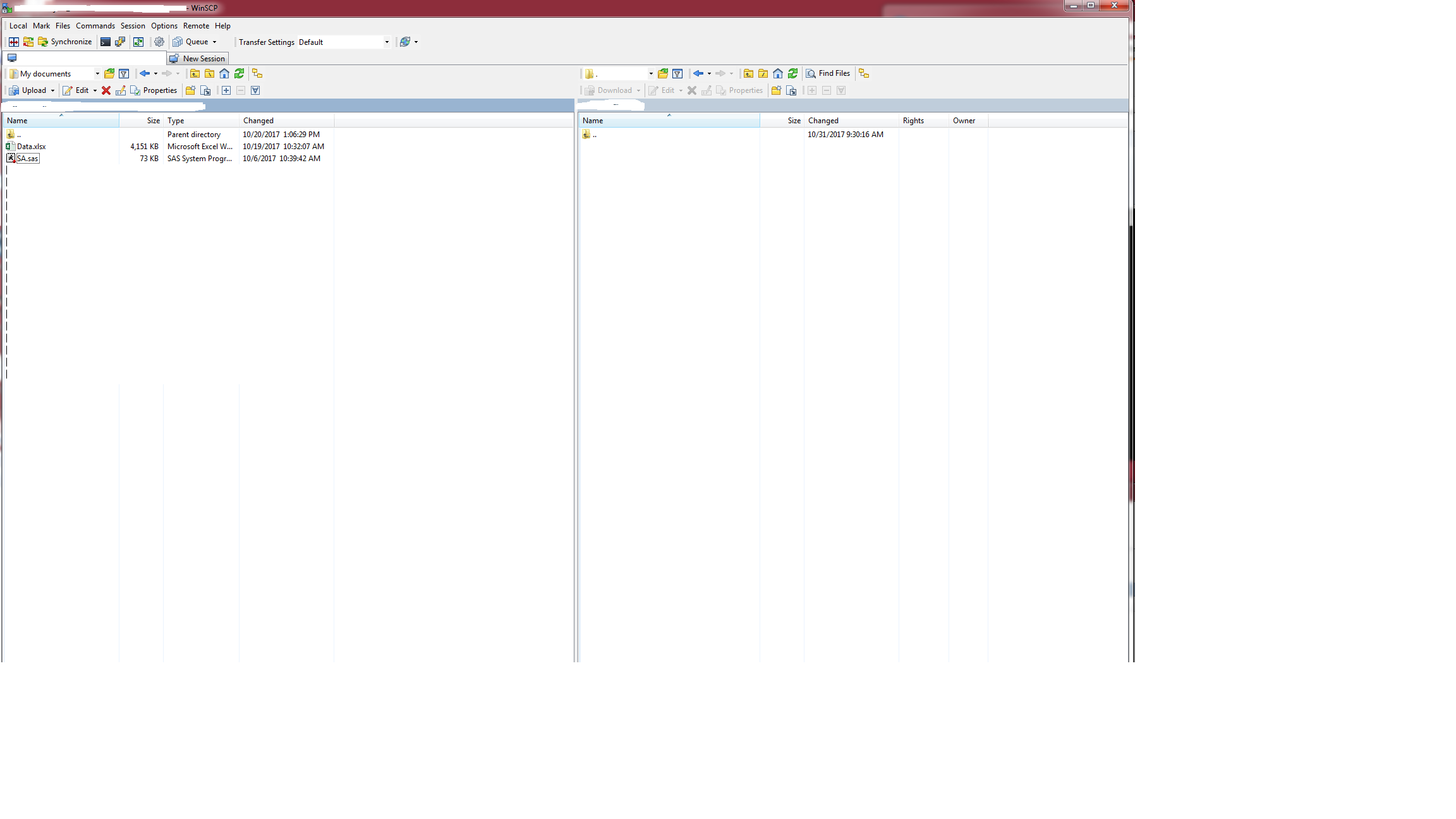 I am having an issue with uploading files to a directory on the Server using Winscp. When I try to FTP the "Data.xlsx" file or the SA.sas file in the attached image, I get the Error "Cannot close remote file 'Data.xlsx'". I used Task Manager to ensure no applications associated with Excel are running so I am not too sure how to solve this issue.