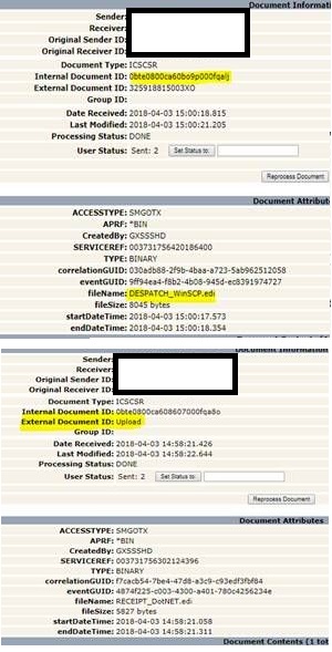I have attached the information received from the client. When using the WinSCP software, he gets a unique External Document Id (as per the top screen shot, even though he's highlighted Internal Document Id!).