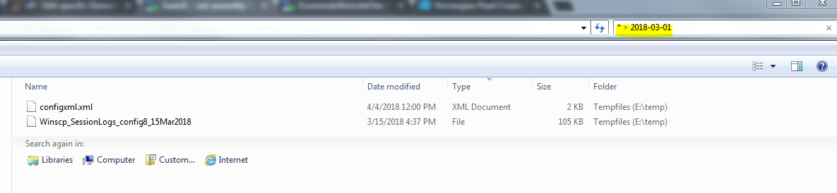 List<RemoteFileInfo> files = CurrentSession.EnumerateRemoteFiles( path, "*>=2018-04-01", EnumerationOptions.AllDirectories).ToList();