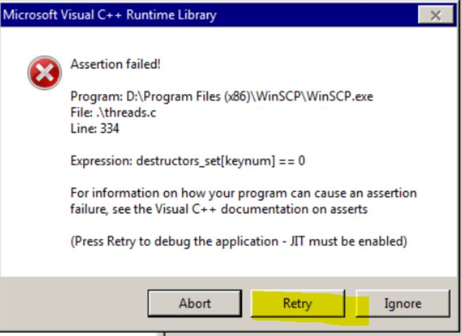 (Press Retry to debug the application - JIT must be enabled)