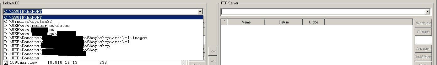 Gibt es eine Möglichkeit, diese Leiste zu einem Drop-Downfeld zu machen, aus dem man dann für diese Verbindung bisher genutzte Verezeichnispfade auswählen kann? (Local und Server)