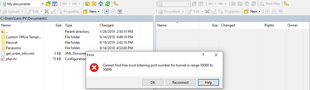 I rolled back to 1803 version and WinSCP works again.Cannot find free local listening port number for tunnel in range 50000 to 50099