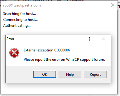 Error External exception C0000006 Please report the error on WinSCP support forum. Ok Help Report