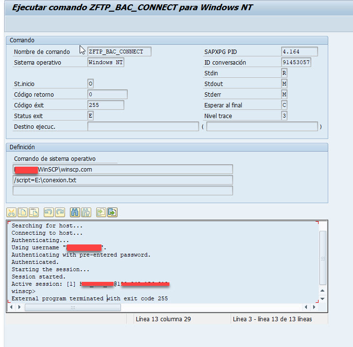 I am integrating SAP with Winscp, through commands.