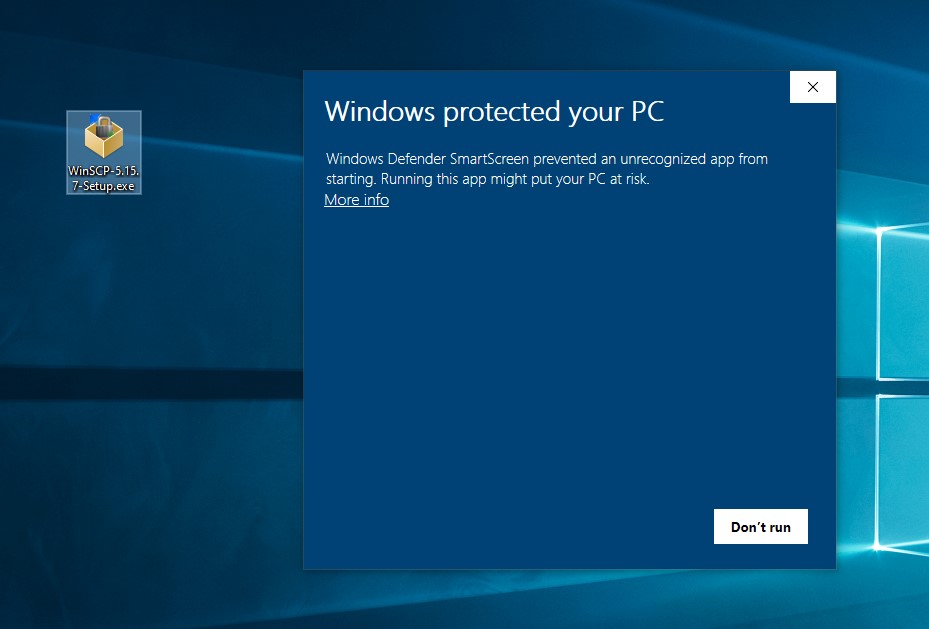 Windows Defender SmartScreen prevented an unrecognized app from starting. Running this app might put your PC at risk.