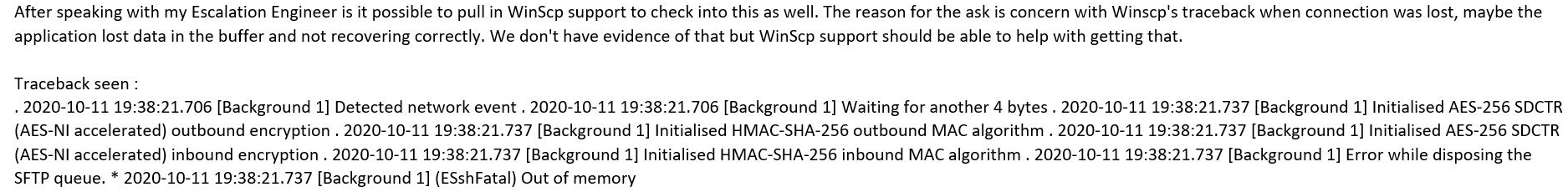 - some users forcefully close WinSCP and restart the application to continue the transfer due to the transfer hanging. This is most likely a good indicator that a file will become corrupted.