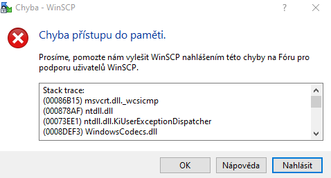 Chyba přístupu do paměti.