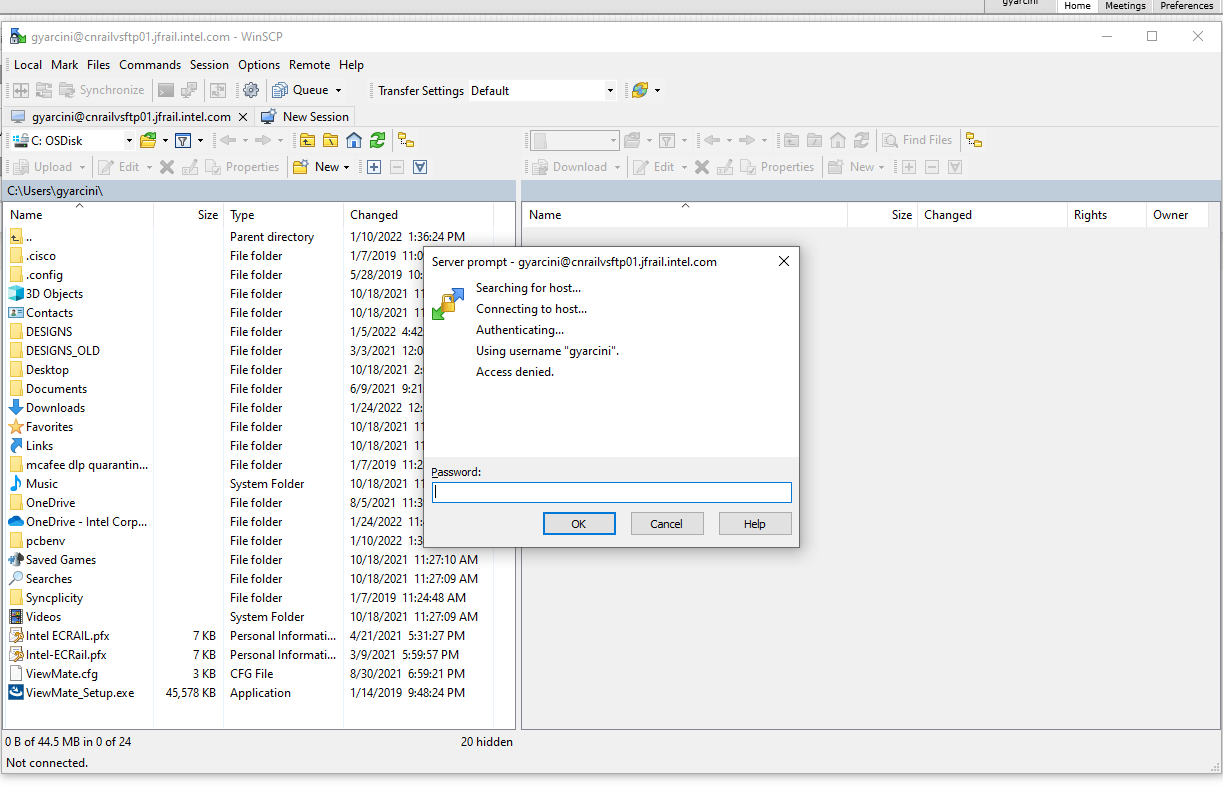 Hi, today I'm having issues with WinSCP, it shows me "access denied". Could you help me please?