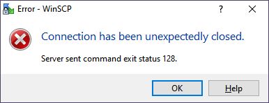 Re: Exiting WinSCP sometimes throws error "Connection Unexpectedly Closed" (exit code 128)