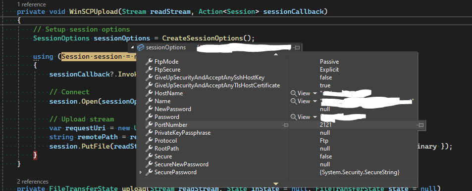 session.FileTransferProgress += (s, e) => { if (fileTransferState.Canceled) e.Cancel = true; fileTransferState.BitesWritten = (long)(fileTransferState.StreamLength * e.FileProgress); }; session.PutFile(readStream, remotePath);