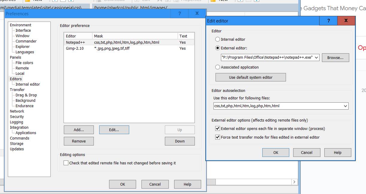 I have settings to use Note++ as my editor. The icon is correct but clicking any file only opens the internal editor. Have checked settings three times and they are correct but still refuses to use my external editor.