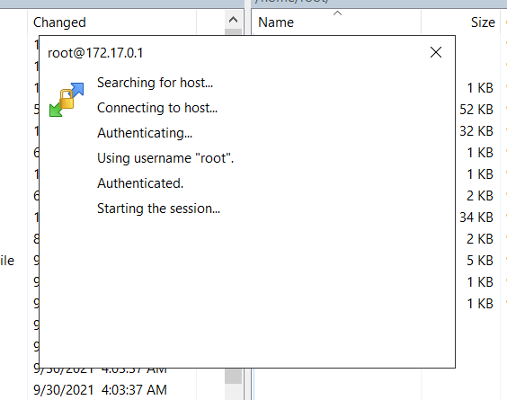 However, the WinSCP still does not complete the login process – it *now* reports "Authentication failed" when it attempting to log in.