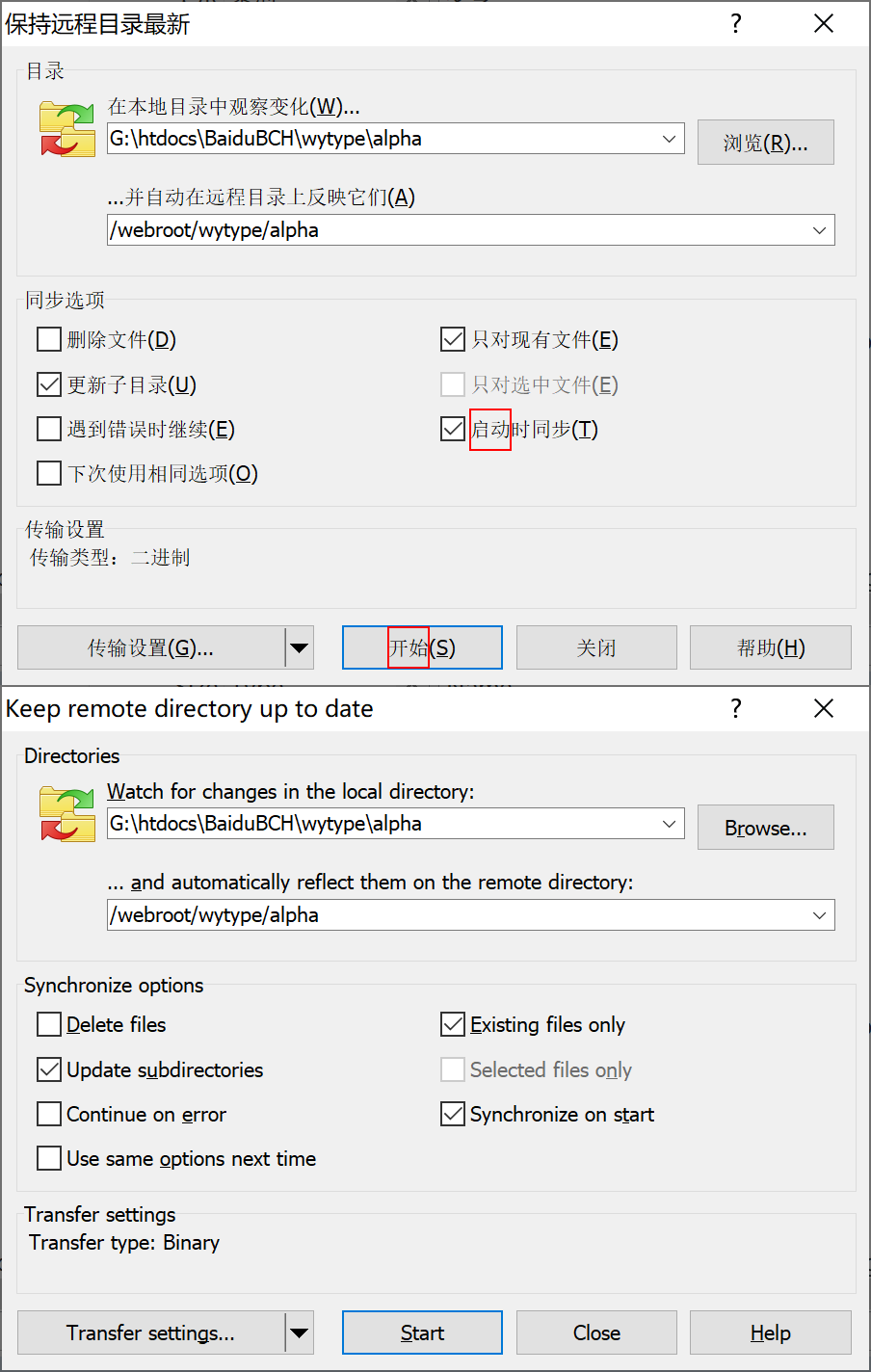 The checkbox string (the first circle) need to be change to "在开始时同步". Or, the button string need to be change to "启动".