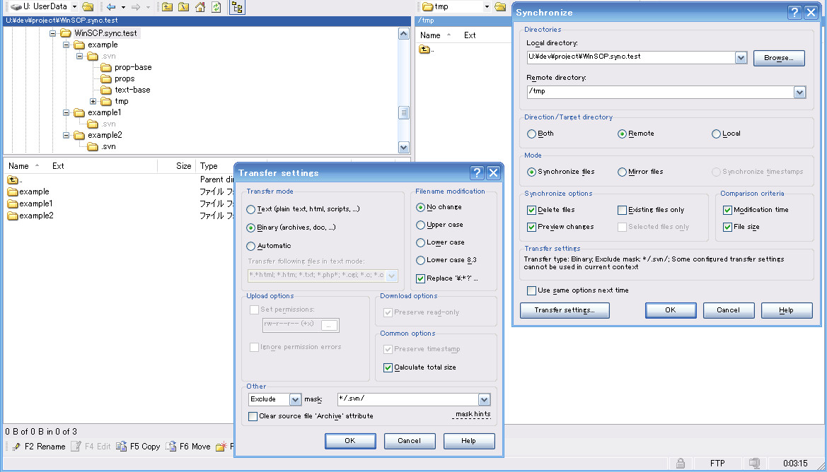 When I drag the example directory, Synchronize with exclude mask such as below.