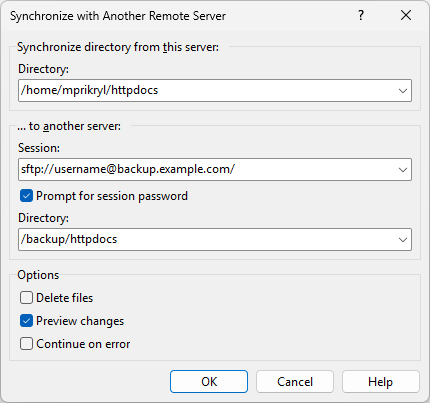 This extension allows you to synchronize a directory on a server with a directory on another server.