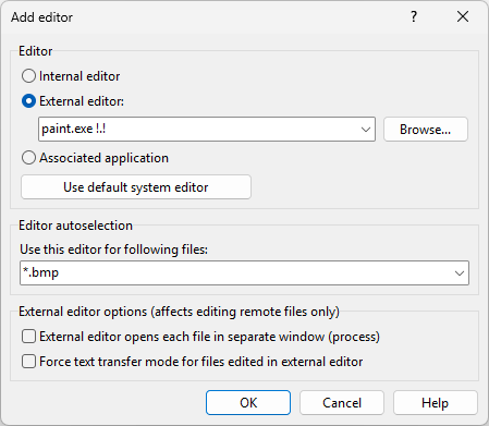 Select if you want to use internal editor, external editor or application associated with file type in Windows File Explorer.1
