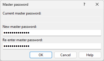 Enter new master password to New master password and confirm it by entering it again into Re-enter master password.