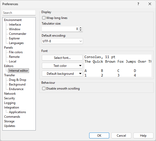 The Internal Editor page on the Preferences dialog allows you to configure options for internal editor.