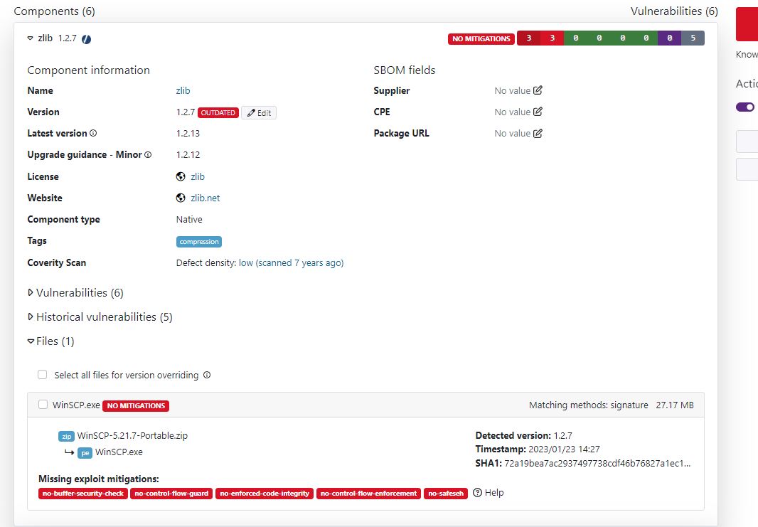 While scanning latest version with Black Duck it reports usage of zlib 1.2.7 library with known vulnerabilities.