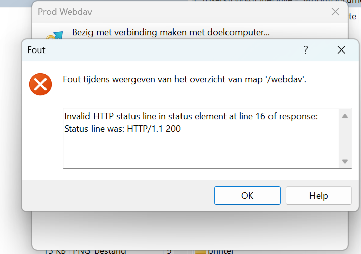 Re: Connection failed to WebDAV: Status line was: HTTP/1.1 200