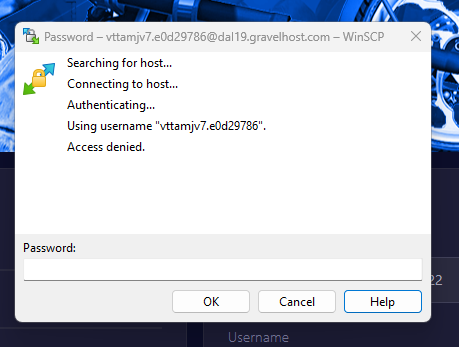 I can not access my SFTP. I am getting an "Access denied" even when I changed my password still getting Access denied.