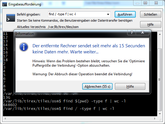 Unter der Funktion "Das entferte Verzeichnis auf dem aktuellen Stand halten" kommt, bei über 500 Verzeichnissen, die Meldung: